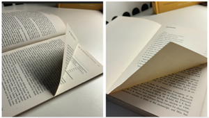 Glue is applied to the spine of the book – one edge of the book block – often roughened to improve grip. Glue can either be hot-melt or cold. If the book block is ground/scored this can result in the book block losing 1-3mm of its size along one edge. Polyurethane Reactive adhesive (PUR) binding is a popular method of binding paperback books. In addition to PUR, books can be bound by using lower cost EVA (hot-melt) glue. PUR adhesive is more flexible meaning the book can be opened flatter.